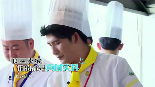 体力虽不够,但还能靠智取,大张伟双手齐上阵,鹿晗也物尽其用,将大勺垫在锅底。看到“新大鹿”卖力支撑,老师体恤道,“新生实在端不住的可以放下”,但大张伟手可断,面子不能丢,一边夸下海口“端锅很简单”,一边悄悄把锅里的沙子舀出以减轻重量,旁边鹿晗看到了也有样学样的减少重量。