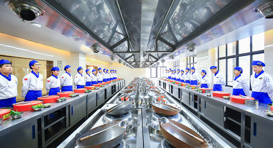 新东方烹饪教育(上海校区)教学设施先进,拥有现代化不锈钢灶具炉台,建有标准化教学示范厅、现代化操作大厅、熟练的切配、热菜、冷拼、雕刻、面点等各类实习大厅、标本展示厅和多媒体教室。独创的互动式“模拟餐厅”教学,开创了烹饪教育的先河。