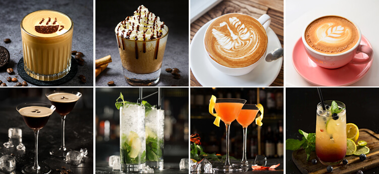 自学主要学习爆款咖啡的制作方法和研究鸡尾酒的色香