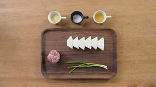 肉馅 50克、冬瓜 200克、盐 5克、小葱 10克、鸡精 5克、料酒 10克